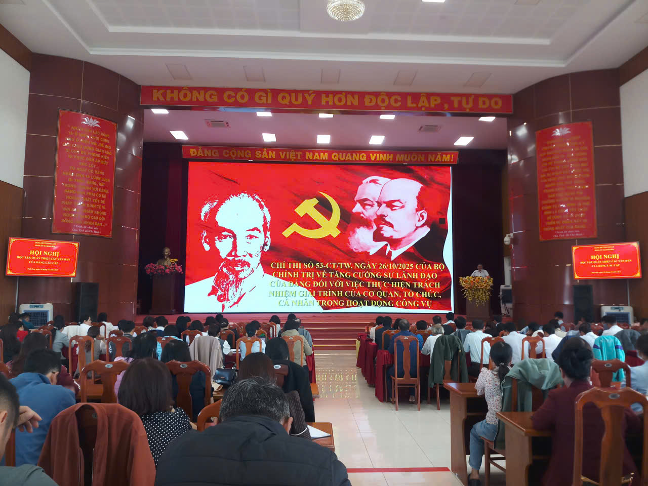 Tại hội nghị, các đại biểu đã được nghe quán triệt những nội dung trọng tâm của Chỉ thị số 53-CT/TW, ngày 26/10/2025 của Bộ Chính trị về tăng cường sự lãnh đạo của Đảng đối với việc thực hiện trách nhiệm giải trình của cơ quan, tổ chức, cá nhân trong hoạt động công vụ; Nghị quyết số 68-NQ/TW ngày 04/5/2025 của Bộ Chính trị về phát triển kinh tế tư nhân và Kế hoạch hành động số 16-KH/TU ngày 21/8/2025 của Ban Thường vụ Tỉnh ủy về thực hiện Nghị quyết số 68-NQ/TW ngày 04/5/2025 của Bộ Chính trị về phát triển kinh tế tư nhân trên địa bàn tỉnh Gia Lai và các văn bản liên quan của Trung ương, Tỉnh ủy.