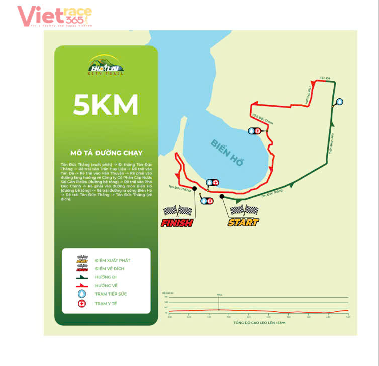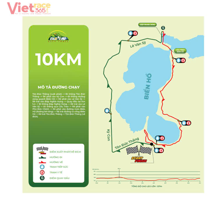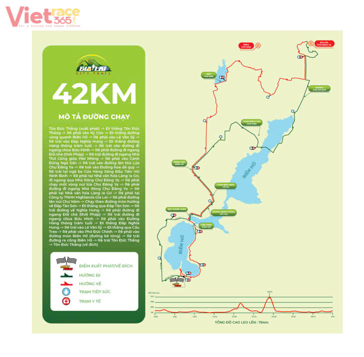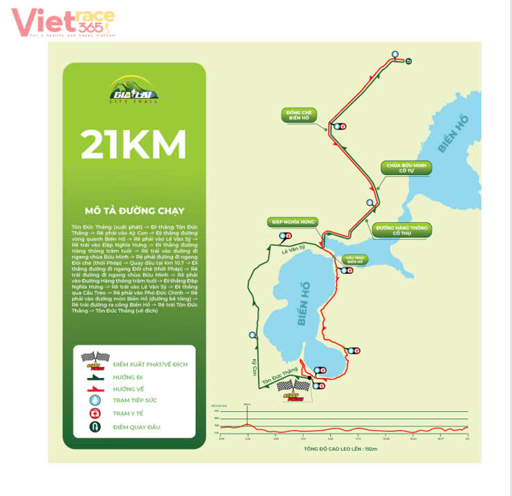 - Địa điểm xuất phát và về đích:Cổng chính Khu di tích Thắng cảnh Biển Hồ, đường Tôn Đức Thắng, xã Biển Hồ, TP. Pleiku, tỉnh Gia Lai.
