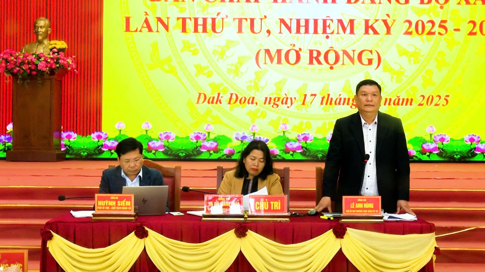 Tham dự hội nghị có các đồng chí Ủy viên Ban Chấp hành Đảng bộ xã khóa I; Bí thư các tổ chức đảng trực thuộc Đảng ủy; Phó các cơ quan chuyên trách tham mưu, giúp việc Đảng ủy; các đồng chí Ủy viên Ủy ban Kiểm tra Đảng ủy; Phó các phòng, ban chuyên môn thuộc Ủy ban nhân dân xã; Phó Giám đốc Trung tâm Phục vụ hành chính công xã. Hội nghị cũng mời đại diện lãnh đạo các đơn vị: Hội Cựu chiến binh xã; Trung tâm Giáo dục nghề nghiệp – Giáo dục thường xuyên Đak Đoa; Thuế cơ sở 7, tỉnh Gia Lai; Thống kê cơ sở Mang Yang; Văn phòng Đăng ký đất đai chi nhánh Đak Đoa; Điện lực Đak Đoa.