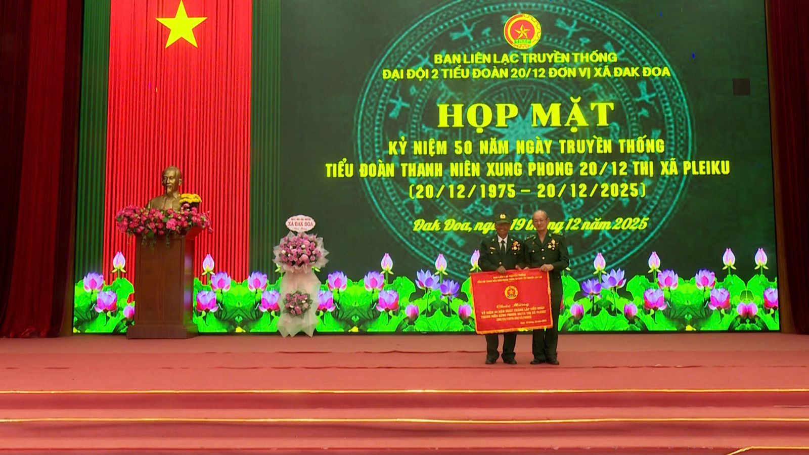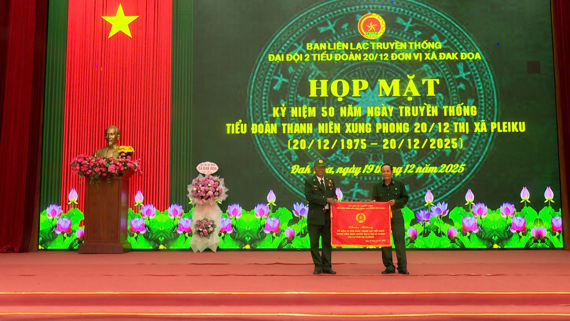 Nhân dịp này, Ban liên lạc tổng đội TNXP Pleiku và Ban liên lạc tổng đội TNXP tháng 10/1975 Tây Nguyên tặng cờ nhân dịp kỷ niệm 50 năm ngày thành lập Tiểu đoàn TNXP 20/12 thị xã Pleiku.