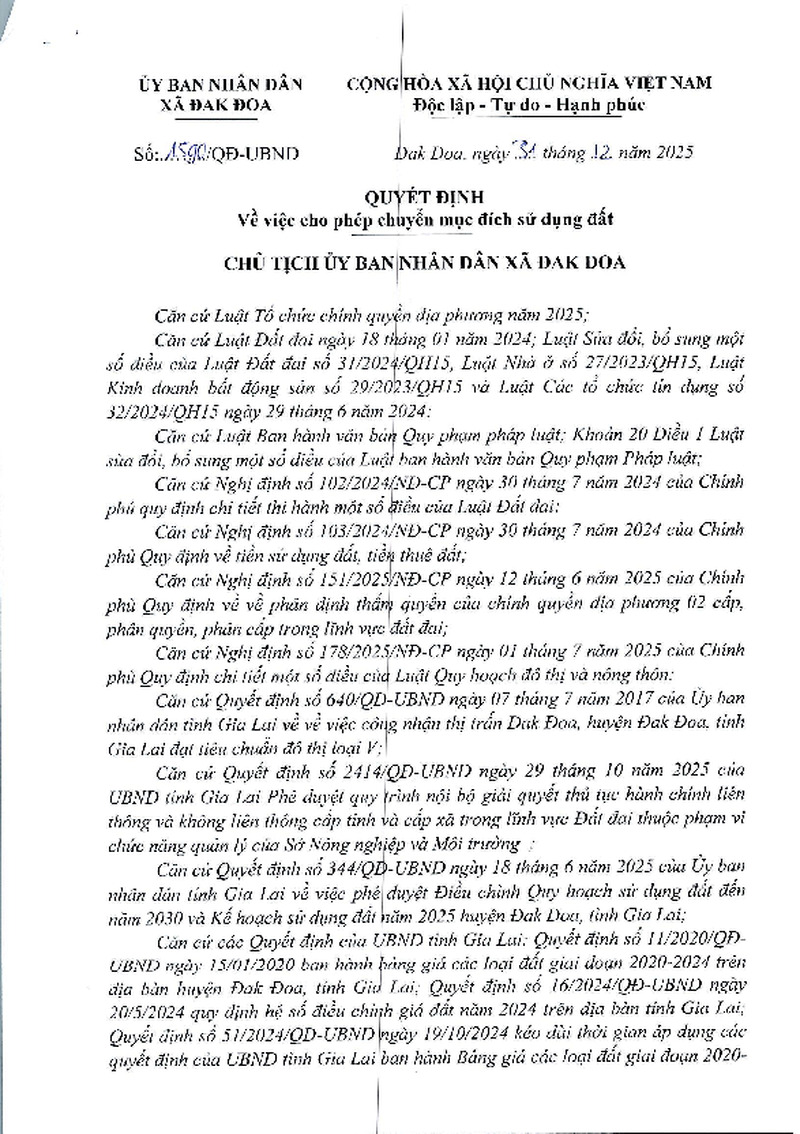 | Phạm vi | Xã Đak Đoa | Ngày ban hành | 31/12/2025 |
