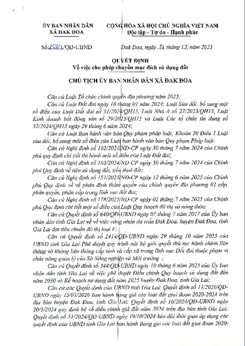 | Phạm vi | Xã Đak Đoa | Ngày ban hành | 31/12/2025 |
