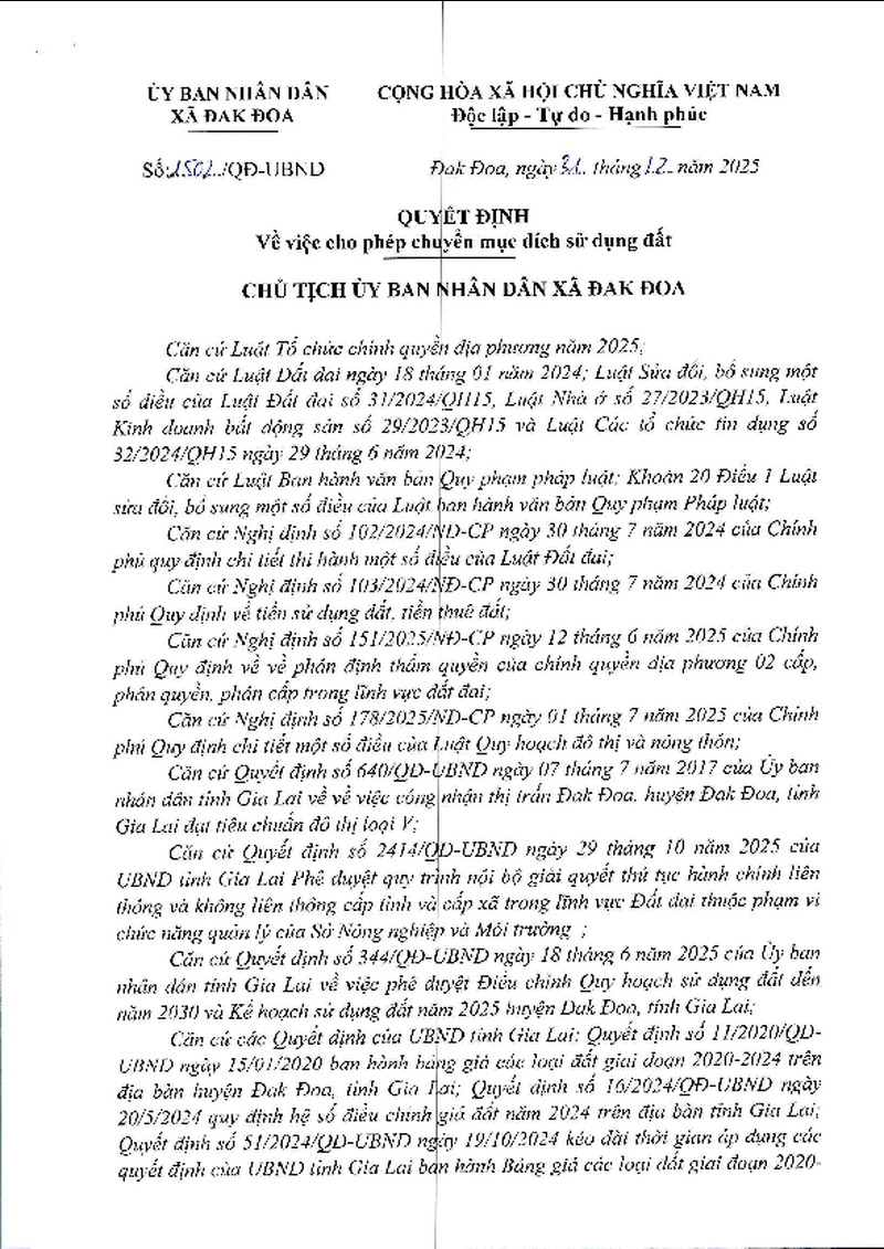 | Phạm vi | xã Đak Đoa | Ngày ban hành | 31/12/2025 |