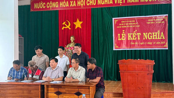 Lễ kết nghĩa giữa Chi bộ Ủy ban nhân dân xã, Chi bộ trường tiểu học số 1 Glar, Chi bộ trường Tiểu học số 3 Đak Đoa với cán bộ và Nhân dân thôn Dôr 1, thôn Tuơh Klah xã Đak Đoa
