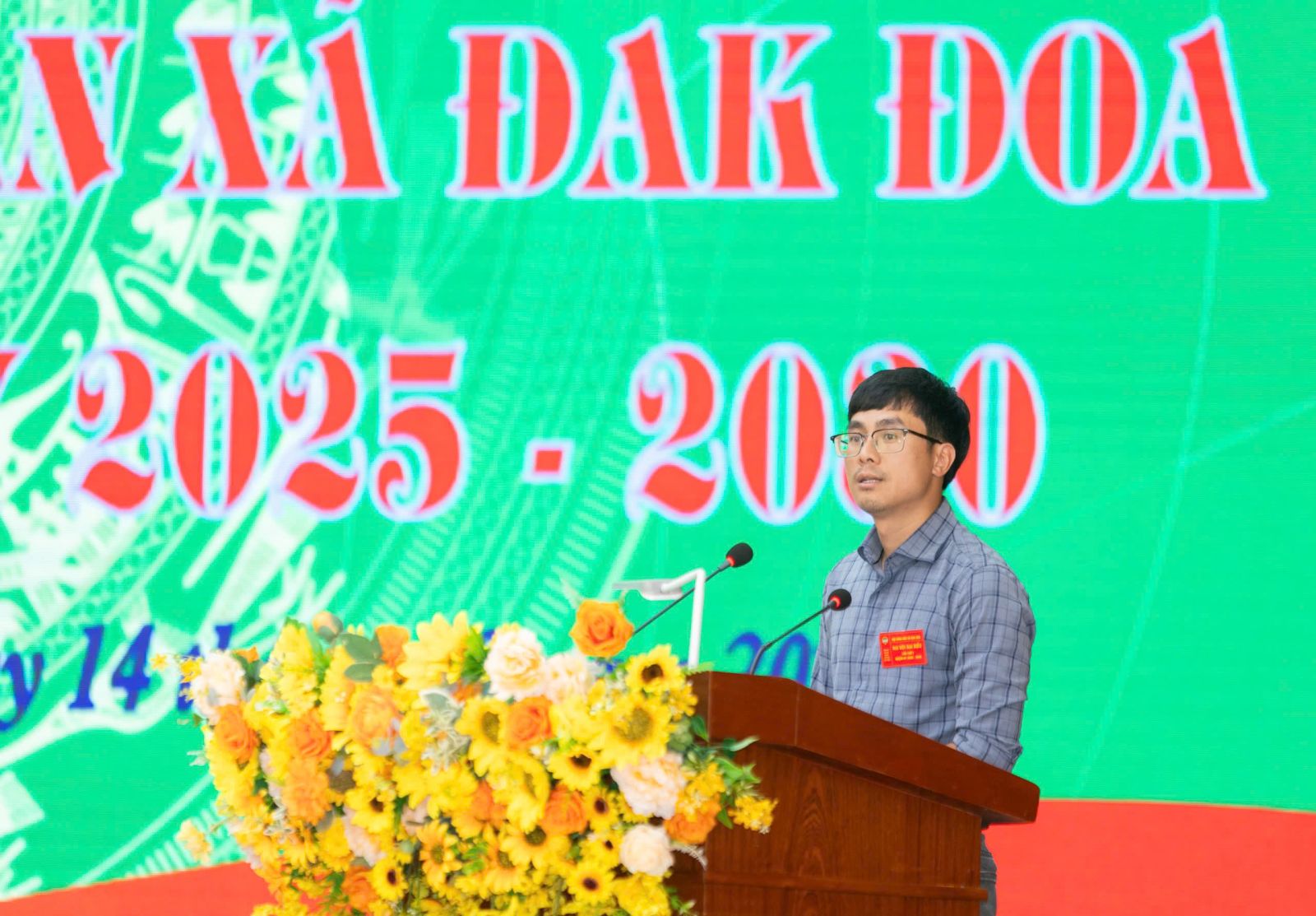 Phát biểu tại Đại hội, đồng chí Bùi Thanh Bình- Bí thư Đảng ủy, Chủ tịch HĐND xã đã biểu dương các kết quả đạt được của Hội Nông dân xã trong nhiệm kỳ qua, đồng thời, đề nghị Hội tiếp tục đổi mới nội dung, phương thức hoạt động, đa dạng các hình thức tuyên truyền, đưa chủ trương chính sách của Đảng và Nhà nước đến với người dân, hội viên, đặc biệt là các chính sách về nông nghiệp, nông dân và nông thôn. Hội cũng đẩy mạnh phong trào Hộ nông dân thi đua sản xuất kinh doanh giỏi, phát triển nông nghiệp bền vững gắn với chuyển đổi số, góp phần xây dựng xã Đak Đoa trở thành vùng động lực phát triển kinh tế của tỉnh.