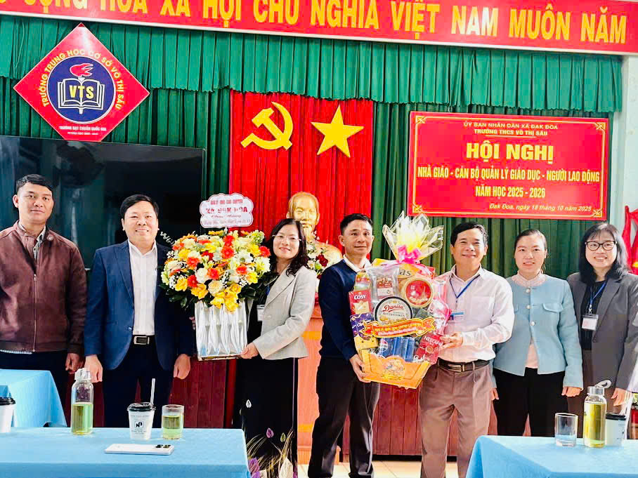 Đoàn đến thăm hỏi, lắng nghe tình hình dạy và học tại Trường Trung học cơ sở Võ Thị Sáu. Qua đó, nắm bắt những khó khăn về cơ sở vật chất, hoạt động chuyển đổi số, tình trạng thiếu giáo viên bộ môn, quá trình đào tạo và bồi dưỡng học sinh giỏi trong các nhà trường…