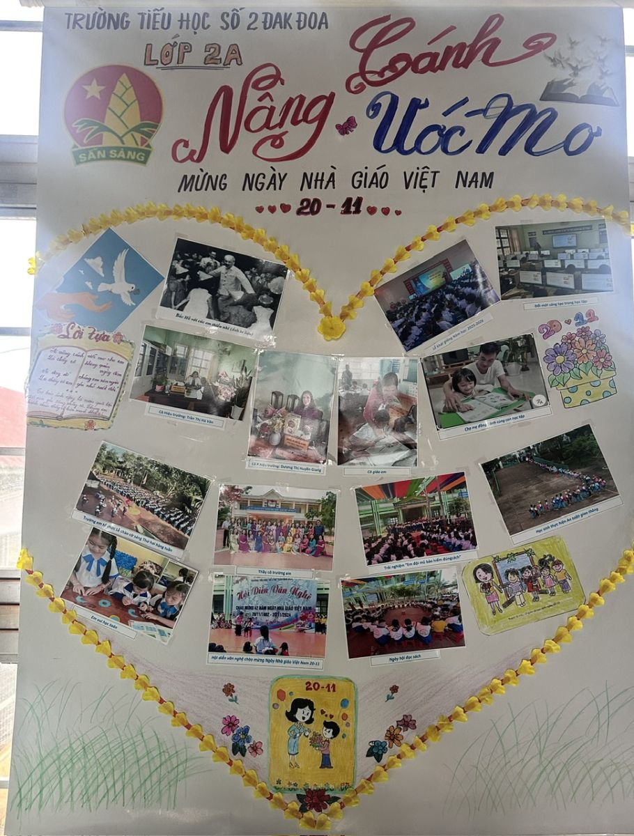 Trong dịp lễ kỷ niệm 43 năm Ngày nhà giáo Việt Nam (20/11/1982-20/11/2025) Ban giám hiệu nhà trường tiểu học số 2 Đak Đoa đã tổ chức hội thi báo tường, báo ảnh, video về thầy cô và mái trường chủ đề “Ngôi trường mến yêu”. Đây là hoạt động ý nghĩa nhằm tri ân thầy cô, đồng thời tạo phấn khởi tham gia thi đua, sáng tạo, đoàn kết hỗ trợ nhau của các em học sinh, khối lớp thể hiện tình cảm đối với thầy cô và ngôi trường thân yêu.