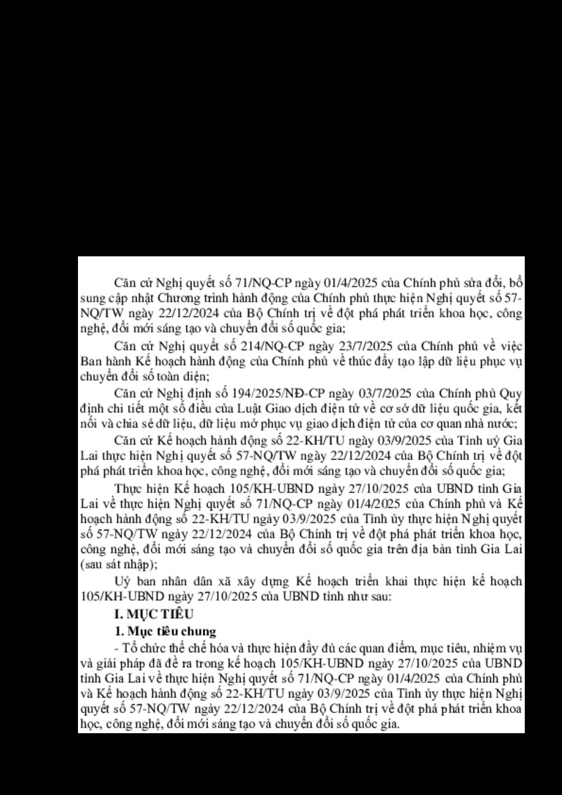 | Tiêu đề văn bản | KH thực hiện Nghị quyết 71/NQ-CP ngày 01/04/2025 và Kế hoạch hành động số 22-KH/TU ngày 03/09/2025 thực hiện Nghị quyết 57-NQ/TW ngày 22/12/2024 của Bộ CHính trị về đôt phá phát triển khoa học, công nghệ, đổi mới sáng tạo và chuyển đổi số Quốc gia | ||